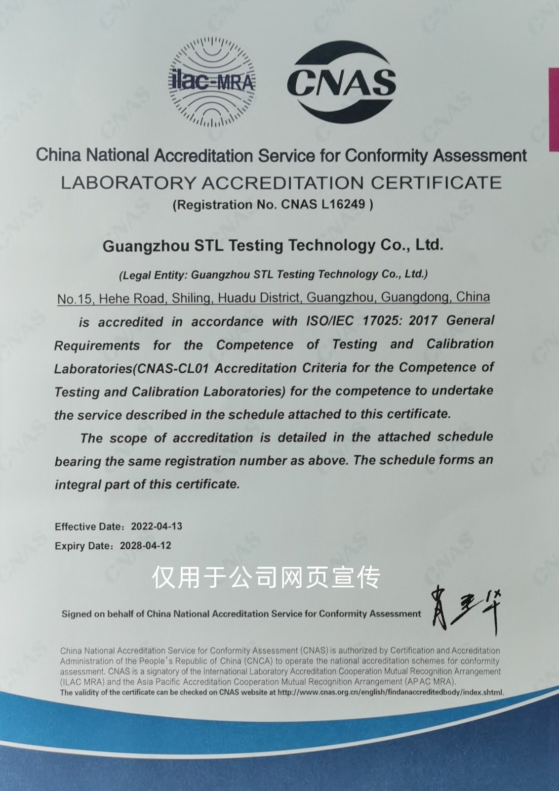 广州市顺通检测科技有限公司自成立以来,在消费品领域努力探索,持续引进先进的检测仪器设备,2022年4月顺利通过CNAS评审,荣获中国合格评定国家认可委员会颁发的“实验室认可证书”,并向美国消费品安全委员会申请,成功成为美国消费品安全委员会CPSC认可实验室。